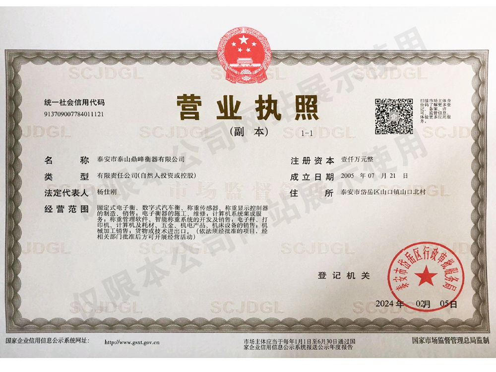 泰安市泰山鼎峰衡器有限公司位于馳名中外的泰山腳下,是中國衡器協會會員單位,公司主要生產1-10T電子地上衡、10-200T汽車衡、10-200T數字汽車衡、XK3198稱重顯示控制器,XK3198-D數字式稱重顯示控制器,DFZD、DFQD、DFQ、DFX系列稱重傳感器及HCS電子防爆秤及特殊專用衡器,經營各類電子儀表、傳感器及各種衡器地磅配件等。